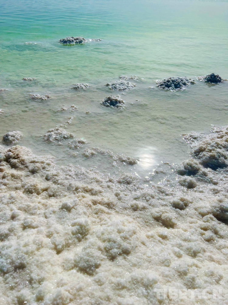 這里是鹽的天堂。湖水是高濃度的鹵水,蘊(yùn)藏著極其豐富的氯化鈉、氯化鉀、氯化鎂等無機(jī)鹽。厚度近20米的堅(jiān)硬鹽蓋構(gòu)成天然的鹽橋,旁無護(hù)欄,下無橋墩,更無流水。我們的汽車疾馳而過,毫無顛簸之感。湖岸邊有大量析出的鹽晶,形成厚實(shí)的白色鹽灘,在高原陽光的直射下發(fā)出晃眼的白光。(中國西藏網(wǎng) 文/李一凡 龍真多吉 張萌萌)
