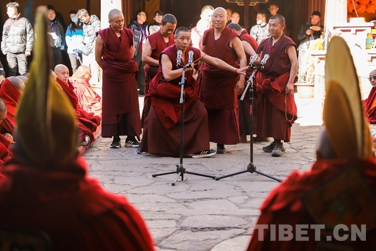 圖為西藏自治區(qū) 2024年度藏傳佛教學(xué)經(jīng)僧人考核晉升格西拉讓巴學(xué)位立宗答辯暨頒證儀式現(xiàn)場(chǎng) 攝影:賈華加