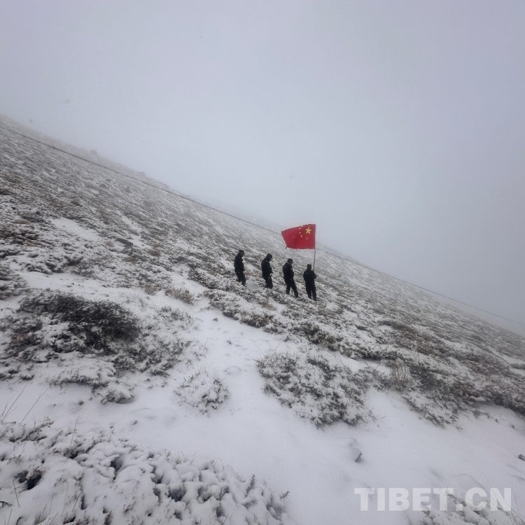 圖為斜爾瓦執(zhí)勤點民警冒著風(fēng)雪開展巡邏踏查 攝影:格熱