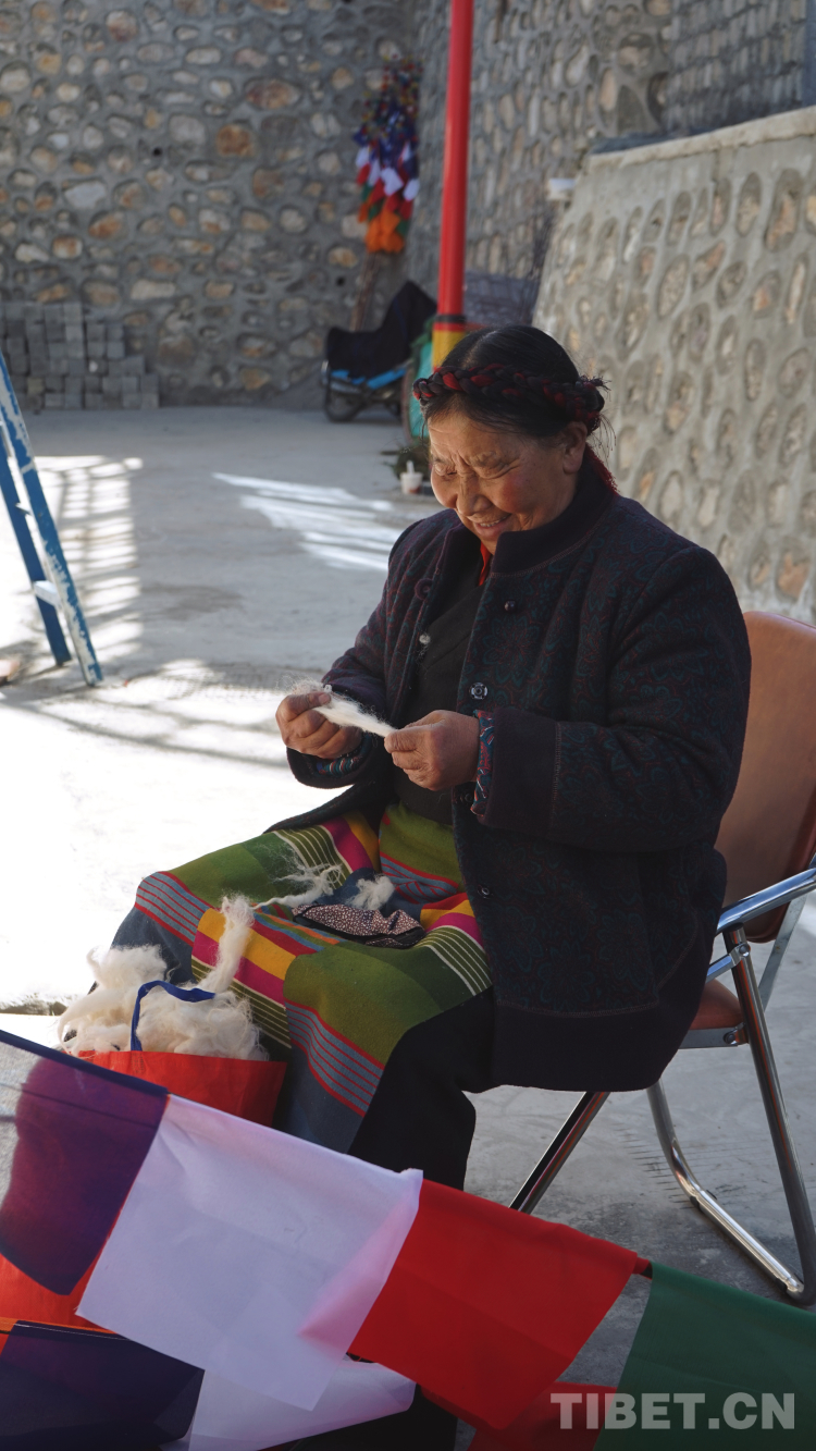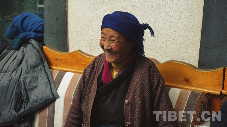 這是我最喜歡的莫啦。住在莫啦家的幾天里,除去采訪、收集素材和寫稿,最放松的時刻就是忙里偷閑和莫啦在廚房烤火、在巷子口曬太陽。莫啦會問我穿得這么少冷不冷,會給我講路過的小女孩有個雙胞胎姐姐,會讓我送熱水給我的同事喝,會拿盛滿卡塞和奶渣的點心盒塞給我吃,會在我想把手頭工作做完再吃飯時問同事我怎么不吃飯。當(dāng)然這些我大多是聽不懂的,有些是德瓊阿佳(莫啦的女兒,拉康社區(qū)婦女主任,同時也是客棧的老板)和達(dá)次哥(這次出差的司機(jī)師傅)翻譯給我的,有些是我倆通過比劃猜到的。
