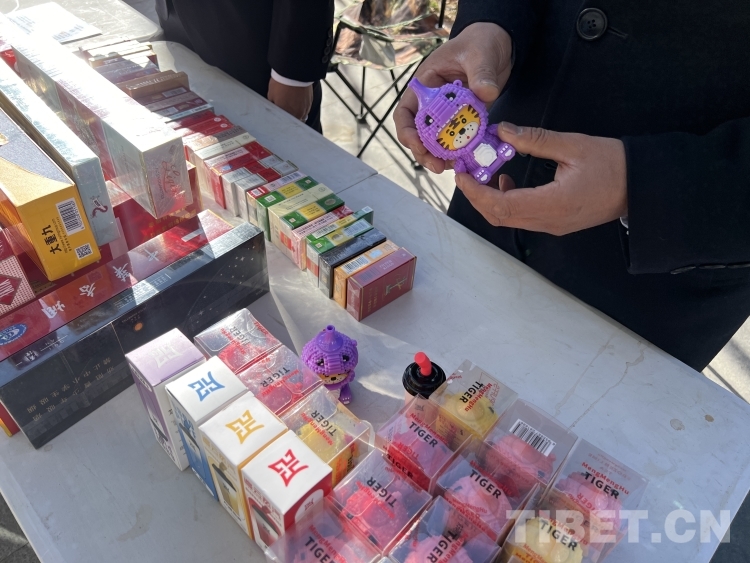 “這種違規(guī)電子煙產(chǎn)品很容易誘導(dǎo)小孩,家長(zhǎng)一定要注意辨別。”“看!這兩種卷煙的煙絲、外包裝、鋼印都是有區(qū)別的……”活動(dòng)現(xiàn)場(chǎng),西藏自治區(qū)煙草專賣局工作人員景浩拿著真假香煙和類似玩具的電子煙向圍觀的群眾講解如何分辨產(chǎn)品的真?zhèn)巍?/p>