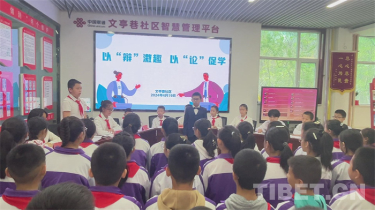 中國西藏網(wǎng)訊 4月19日,青海省西寧市海湖新區(qū)的文亭巷社區(qū)活動室里,傳出稍顯稚嫩卻有力的聲音:“今天我們辯論的題目是:中小學(xué)生應(yīng)不應(yīng)該使用電子產(chǎn)品。下面介紹雙方辯手……”這是文匯小學(xué)五年級二班的學(xué)生在此開展辯論賽。