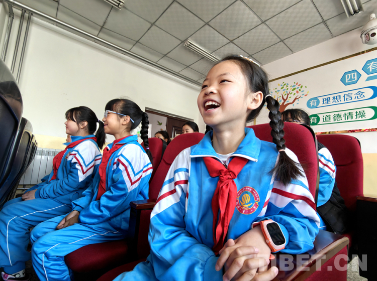 圖為4月23日,西藏自治區(qū)新華書(shū)店在拉薩市城關(guān)區(qū)海淀小學(xué)開(kāi)展的“享受閱讀 讓夢(mèng)飛翔”閱讀校園行活動(dòng)互動(dòng)環(huán)節(jié),有趣的互動(dòng)把小學(xué)生給逗樂(lè)了 攝影:次旦拉姆