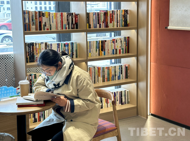 圖為4月23日,讀者在那曲市色尼區(qū)城市書(shū)房?jī)?nèi)閱讀 攝影:王楠