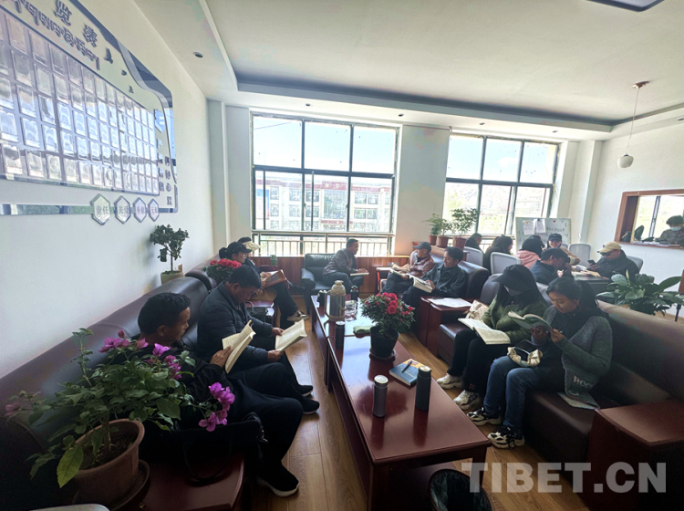 圖為4月23日,拉薩市尼木縣小學(xué)的教師們?cè)陂喿x書(shū)籍 攝影:倉(cāng)覺(jué)