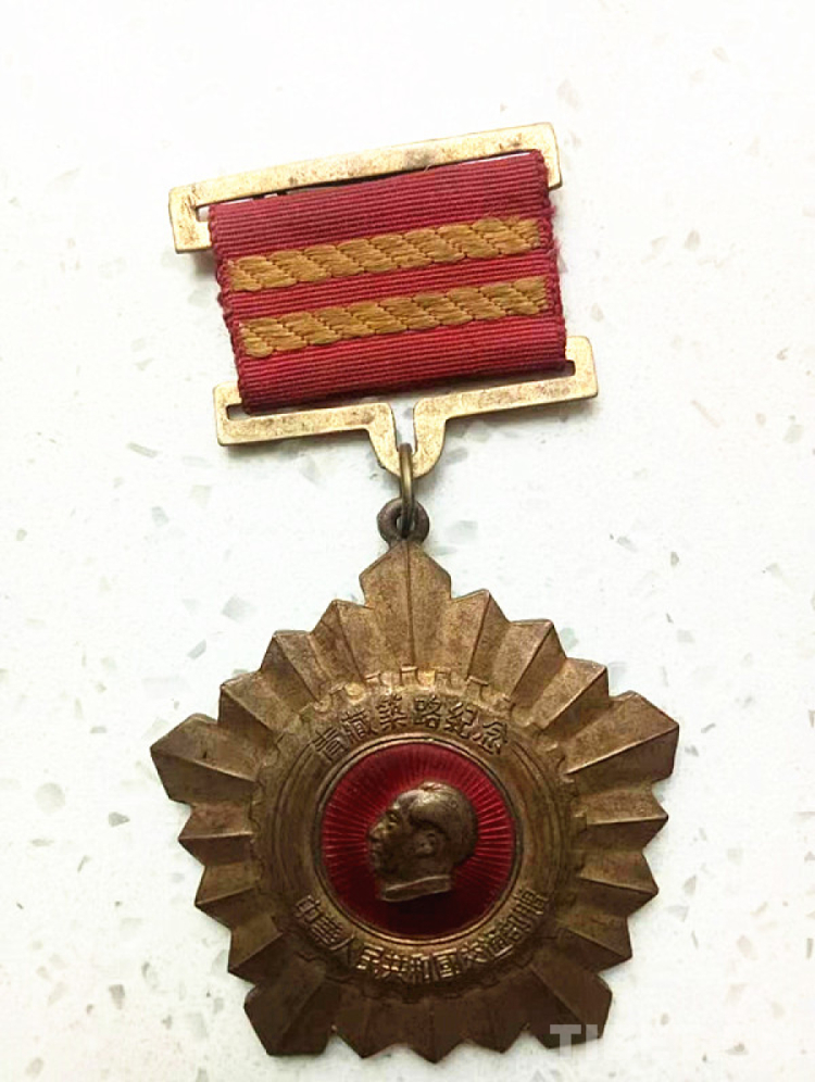 圖為張尚云的外公馬維雄獲頒的青藏筑路紀念章