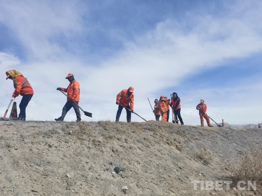圖為青藏公路109線格爾木至拉薩段養(yǎng)路工人在辛勤工作