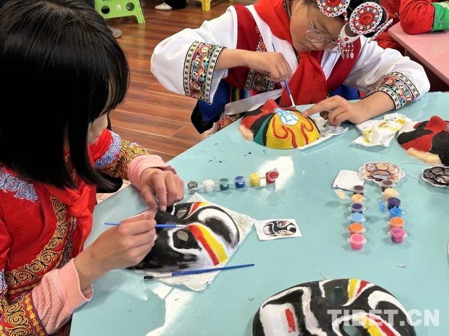 圖為學(xué)生們體驗(yàn)京劇臉譜繪畫