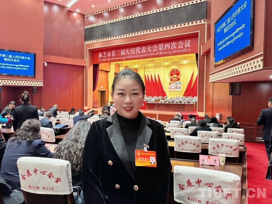 圖為林芝市人大代表付燕在林芝市人大會(huì)場(chǎng)留影