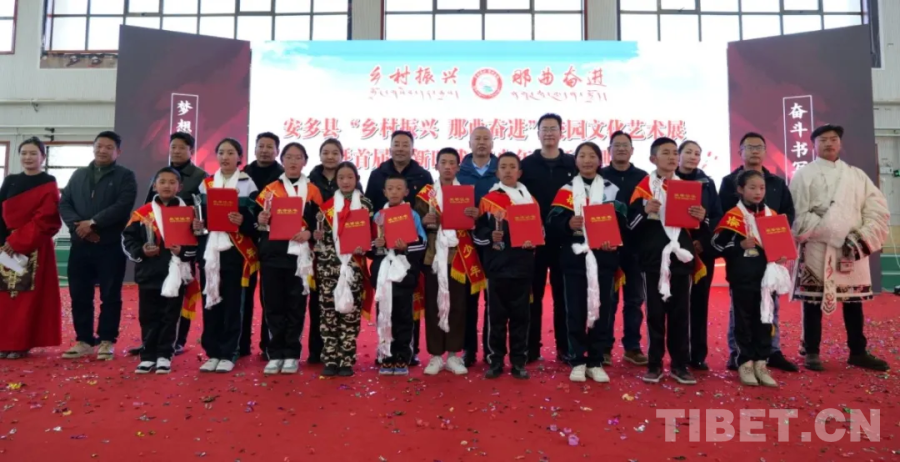 圖為安多縣“鄉(xiāng)村振興 那曲奮進(jìn)”校園文化藝術(shù)展暨首屆“新時(shí)代好少年”頒獎(jiǎng)典禮現(xiàn)場(chǎng)