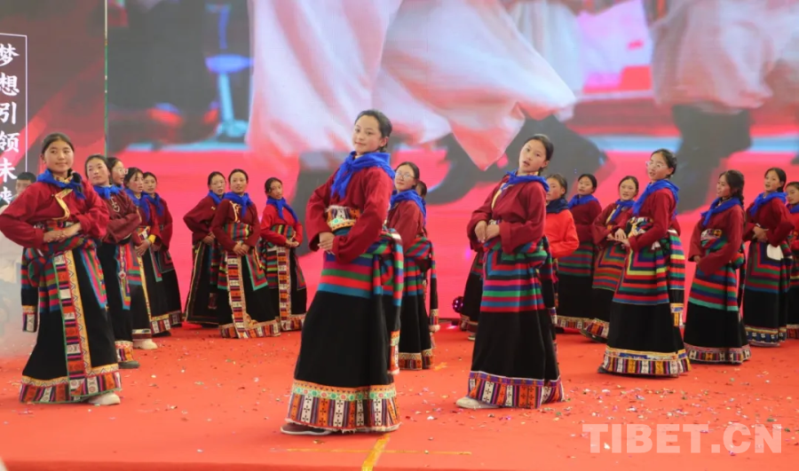 圖為安多縣“鄉(xiāng)村振興 那曲奮進(jìn)”校園文化藝術(shù)展現(xiàn)場(chǎng)