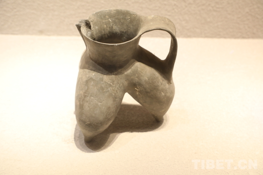 圖為商代灰陶單耳鬲 攝影:龍真多吉