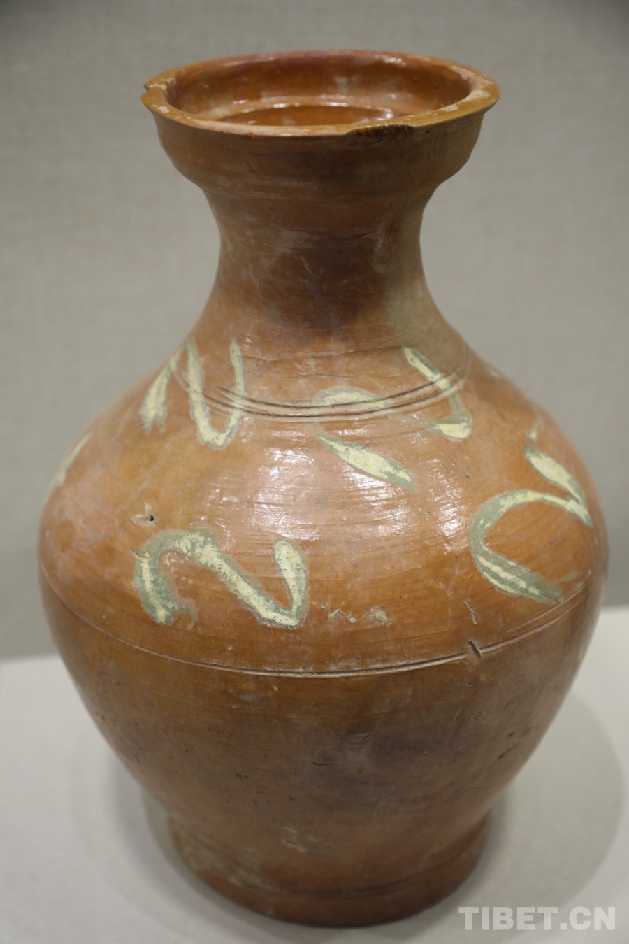 圖為漢代黃釉陶瓶 攝影:龍真多吉