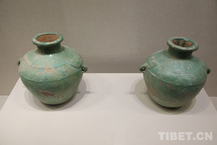 圖為漢代綠釉鋪首銜環(huán)紋陶罐 攝影:龍真多吉