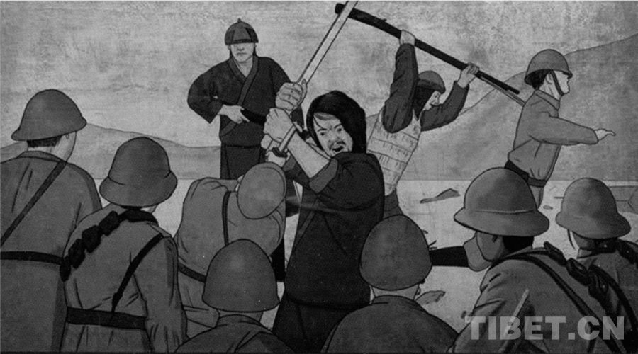 1904年7月,英軍向宗山城堡和江孜城發(fā)動(dòng)進(jìn)攻。英軍用大炮把宗山城堡的圍墻轟塌后,大批手持機(jī)槍的英軍涌入,藏軍堅(jiān)持用土槍、土炮、“烏爾朵”反擊敵人?!盀鯛柖洹笔悄撩穹拍僚Q驎r(shí)使用的工具,以牛毛制成,可將雞蛋大小的石頭甩出幾十上百米,用于驅(qū)趕或圍攏牲畜,也稱為飛蝗石。面對(duì)英軍的數(shù)次進(jìn)攻,藏軍雖已彈盡糧絕,仍用壘石、滾木、飛蝗石堅(jiān)持戰(zhàn)斗,迫使敵人幾次后撤。山上的存水喝干了,他們就在晚上將人用繩子從幾十米高的懸崖上吊下來取山下的污水喝;糧食不夠,一些士兵就靠嚼羊毛、干草來充饑。直到敵人的炮彈引爆了城堡內(nèi)的火藥庫,堅(jiān)守?cái)?shù)晝夜的藏軍才被迫撤出宗山城堡。藏軍的一部分從北面沖殺出來,一部分從西南方向的懸崖上用繩子縋下來,還有一些來不及撤出的士兵從懸崖上縱身跳下,以身殉國。江孜宗堡雖然失陷,但江孜保衛(wèi)戰(zhàn)中英勇的西藏軍民堅(jiān)決抗擊外敵入侵、視死如歸的大無畏精神,向野蠻的英國侵略者表明,西藏人民是不可征服的,中國人民是不可征服的。