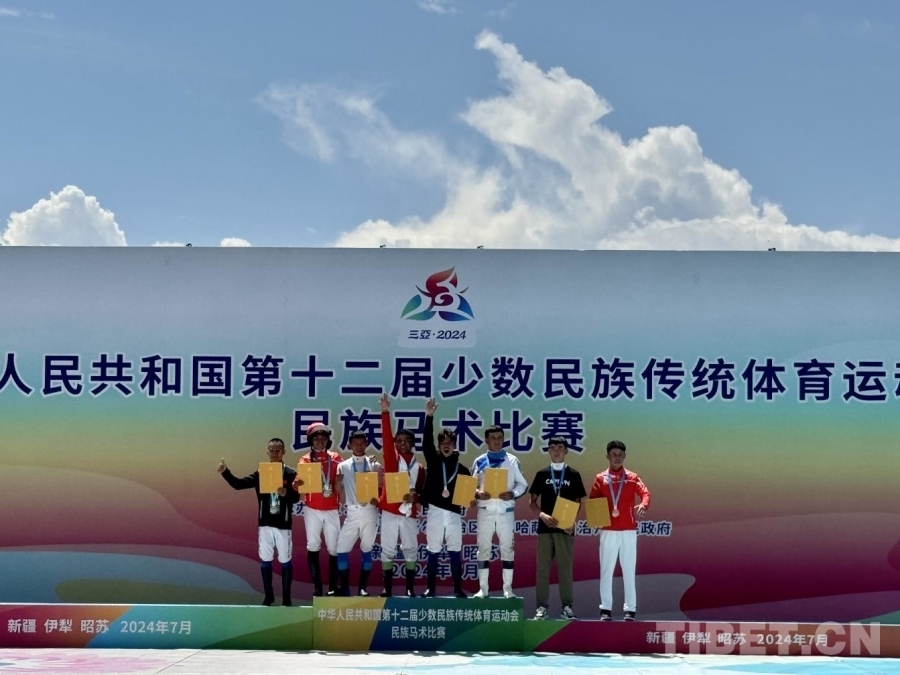 開幕式后,首個馬上項(xiàng)目——民族賽馬2000米比賽鳴槍起跑。經(jīng)過激烈角逐,西藏代表團(tuán)選手扎西平措獲一等獎、陸江峰獲二等獎、仁青倫珠獲三等獎。