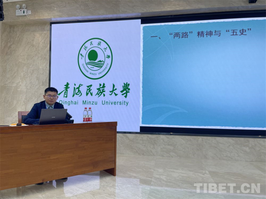 青海師范大學(xué)歷史學(xué)院張中磊副教授,以《淺談“兩路”精神融入高校歷史教學(xué)的意義與實踐路徑》為題,闡釋了“兩路”精神對學(xué)生的“五史”教育、培養(yǎng)青海學(xué)生的家國情懷、增強(qiáng)民族團(tuán)結(jié)的意義,以及具體實踐路徑。