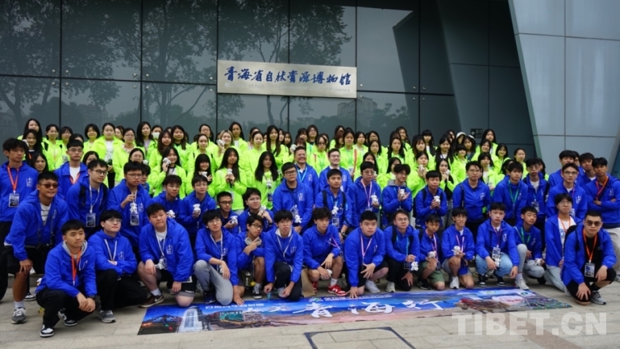圖為香港青少年在青海省自然資源博物館前合影。攝影:李泓慶