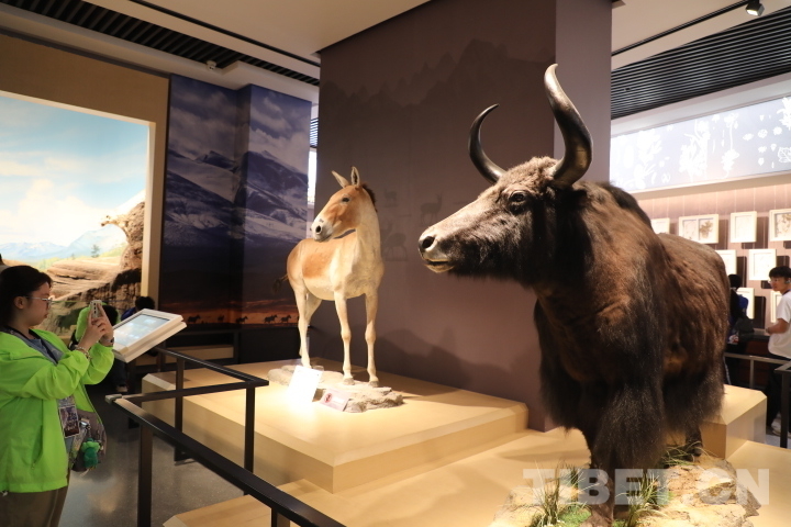 圖為香港青少年參觀高原特有物種藏野驢和野牦牛的標(biāo)本。攝影:桑吉