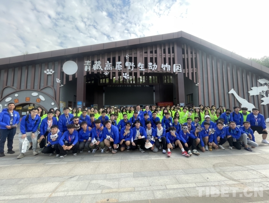 圖為香港青少年在西寧野生動(dòng)物園門口合影。攝影:桑吉