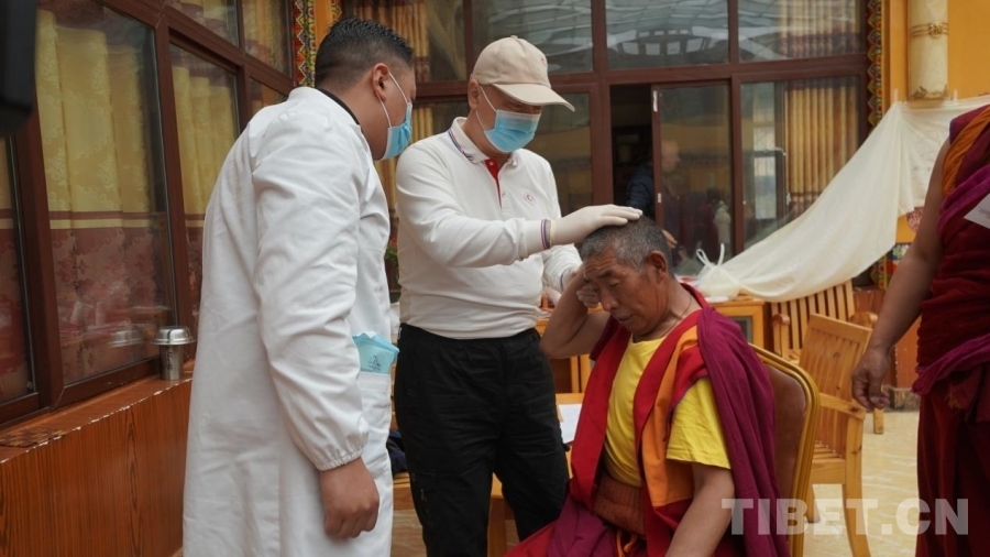 中國西藏網訊 7月10日,“同心·共鑄中國心”公益醫(yī)療團隊走進四川省甘孜藏族自治州理塘縣長青春科爾寺(又名理塘寺),為寺內僧人義診?,F場義診的專家們平均年齡都在四十歲以上,他們都是一邊與高原反應抗衡一邊堅持義診,秉承著“缺氧不能缺精神”的態(tài)度堅持工作。