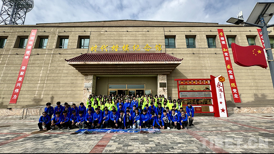 圖為香港青少年在尕布龍時代楷模紀(jì)念館前合影。攝影:趙振宇
