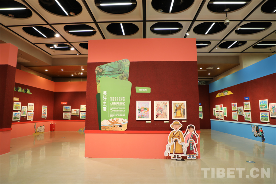 此次活動(dòng)邀請(qǐng)西藏、深圳、上海、北京等地400余名兒童圍繞“家園”“祖國(guó)”“生態(tài)”“未來(lái)”等題目創(chuàng)作了592幅作品,遴選出213幅展出。這些充滿(mǎn)生命色彩和奇妙想象的作品,圍繞西藏自治區(qū)在新時(shí)代的蓬勃發(fā)展,以確保國(guó)家安全和長(zhǎng)治久安、高質(zhì)量發(fā)展、保護(hù)生態(tài)環(huán)境以及強(qiáng)化邊疆建設(shè)為主旨,呈現(xiàn)了孩童心中璀璨絢爛的中國(guó)夢(mèng)。