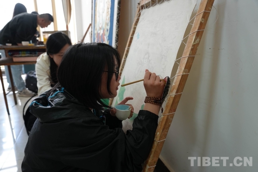在熱貢畫院,師生們親眼目睹了畫師們的創(chuàng)作過(guò)程。畫師們?nèi)褙炞⒌乩L制著唐卡,一筆一畫間盡顯對(duì)藝術(shù)的執(zhí)著與熱愛(ài)。他們精湛的技藝和嚴(yán)謹(jǐn)?shù)膽B(tài)度讓大家深受觸動(dòng),更深刻地體會(huì)到了熱貢藝術(shù)的博大精深。
