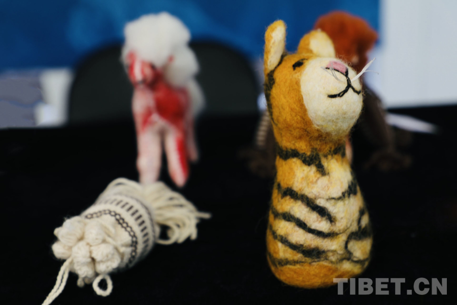 圖為羊毛和牛絨織成的文創(chuàng)產(chǎn)品 攝影:龍真多吉