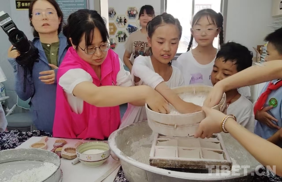 做印糕、纏盤(pán)扣、感受沙地文化……在頭蓬老街,理塘縣青少年研學(xué)團(tuán)和錢(qián)塘區(qū)義蓬街道少先隊(duì)員們感受了一場(chǎng)別開(kāi)生面的非遺文化盛宴,印糕傳承人俞師傅展示了印糕的制作過(guò)程,遠(yuǎn)道而來(lái)的理塘“伢兒”還動(dòng)手自己做印糕,纏盤(pán)扣。“看著簡(jiǎn)單,自己做還是很有難度,但是做成功了又很有成就感!”尕瑪拉姆表示。