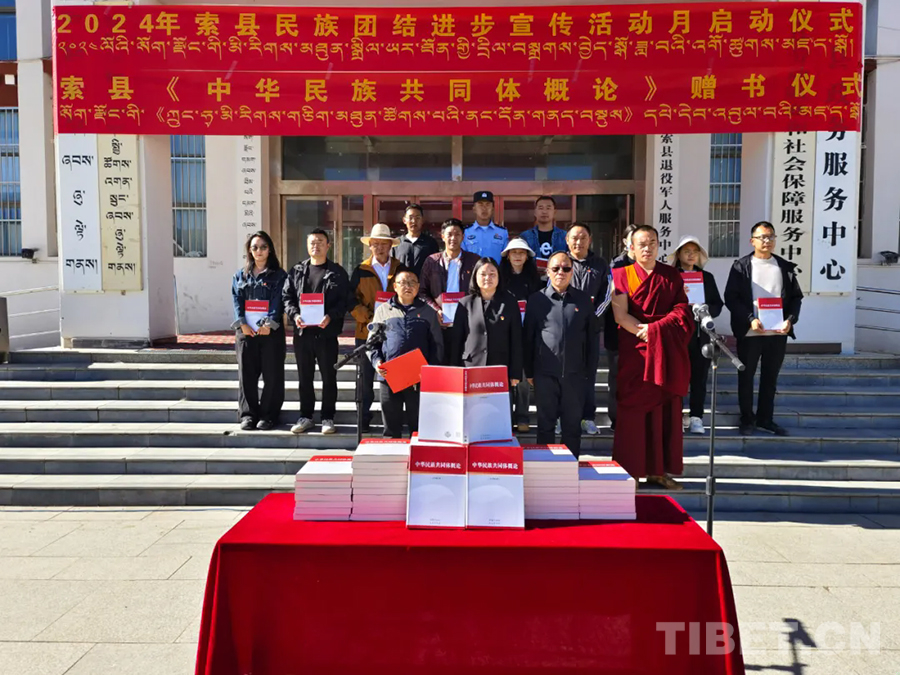 8月30日,西藏自治區(qū)那曲市索縣民族團結進步宣傳活動月啟動儀式舉行,同時開展了《中華民族共同體概論》贈書活動,全縣各族各界干部群眾代表共計100余人參加。此次啟動儀式的舉辦,標志著索縣民族團結進步宣傳活動月正式拉開帷幕。