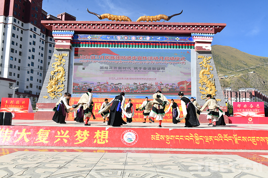 中國西藏網(wǎng)訊 為宣傳黨的民族政策,進(jìn)一步推動(dòng)民族團(tuán)結(jié)進(jìn)步創(chuàng)建工作實(shí)踐,8月30日,西藏自治區(qū)那曲市比如縣9月民族團(tuán)結(jié)進(jìn)步宣傳活動(dòng)月啟動(dòng)儀式在縣娜秀廣場舉行。那曲市人大常委會(huì)副主任、比如縣委書記李成統(tǒng)等領(lǐng)導(dǎo)出席,比如縣委常委張興富致詞。各鄉(xiāng)鎮(zhèn)黨政負(fù)責(zé)人、縣(中)直各單位負(fù)責(zé)同志、農(nóng)牧民黨員、公安干警、醫(yī)護(hù)人員、寺廟僧尼、學(xué)生、商戶等各行各業(yè)代表共200余人參加。