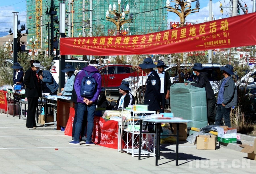 圖為當(dāng)?shù)馗刹俊⑷罕姷葏⒂^2024年國(guó)家網(wǎng)絡(luò)安全宣傳周阿里地區(qū)活動(dòng)集中宣傳活動(dòng) 攝影:王佳豪