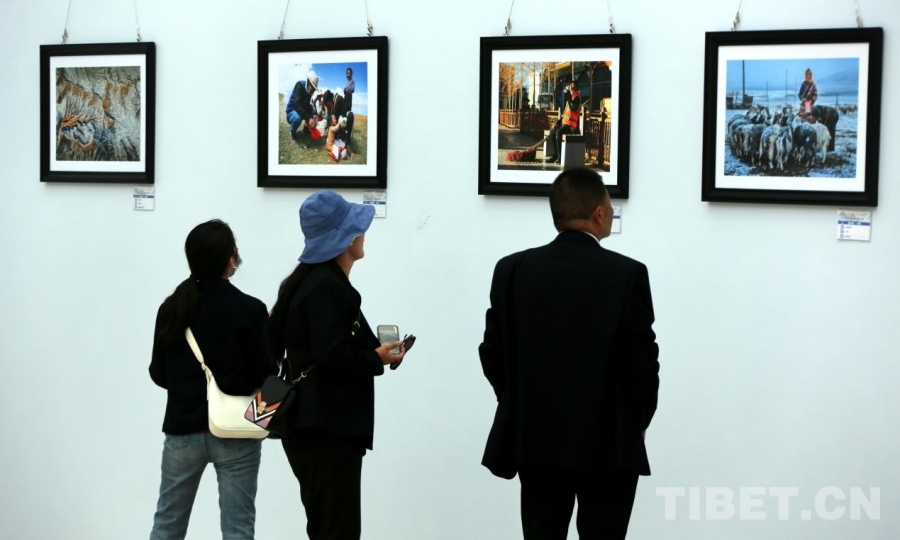 圖為當(dāng)?shù)馗刹俊⑷罕姷葏⒂^“象雄古韻·天上阿里”第四屆網(wǎng)絡(luò)影像大賽優(yōu)秀作品展 攝影:王佳豪