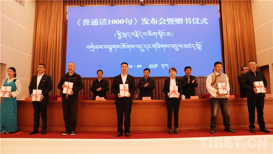 中國(guó)西藏網(wǎng)訊 為進(jìn)一步助力國(guó)家通用語言文字推廣普及,鑄牢中華民族共同體意識(shí)。9月20日,西藏自治區(qū)藏語委辦(編譯局)在拉薩舉行了《普通話1000句》漢藏對(duì)照版新書發(fā)布會(huì)暨贈(zèng)書儀式。西藏自治區(qū)政府副主席、自治區(qū)藏語委副主任甲熱·洛桑丹增出席會(huì)議,西藏自治區(qū)藏語委辦(編譯局)黨組副書記、主任(局長(zhǎng))達(dá)娃次仁作新書出版介紹,會(huì)上宣讀了教育部語文出版社發(fā)來的賀信,并向與會(huì)代表贈(zèng)書。