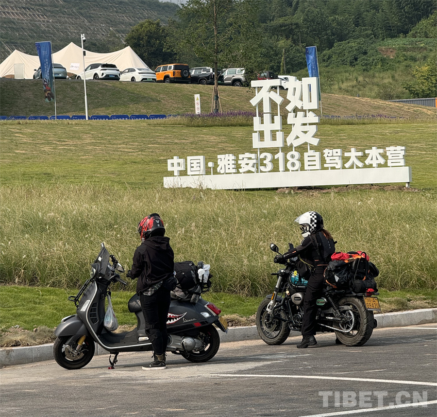 雅安318自駕大本營門口,在一塊“不如出發(fā)”的大型標識牌面前,來自重慶和四川成都的兩位騎行女孩正整裝待發(fā)?!皣鴳c長假馬上來了,我們就想做一件平時難做的事情,騎行318直達拉薩!拉薩是另一個夢開始的地方,我們想到拉薩見一見朋友,再嘗一下非常好喝的酸奶?!闭硗曛?,兩位騎行女孩喊出了“我們拉薩見”的告別口號,戴上頭盔,伴著機車的轟鳴聲,騎行走上了318的遠方。(中國西藏網(wǎng) 記者/王妍丹 蘇洋)