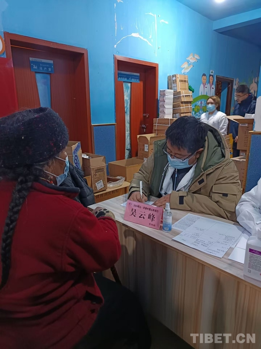 圖為航天總醫(yī)院骨外科專家吳云峰為當(dāng)?shù)厝罕娍丛\ 攝影:賈春玲