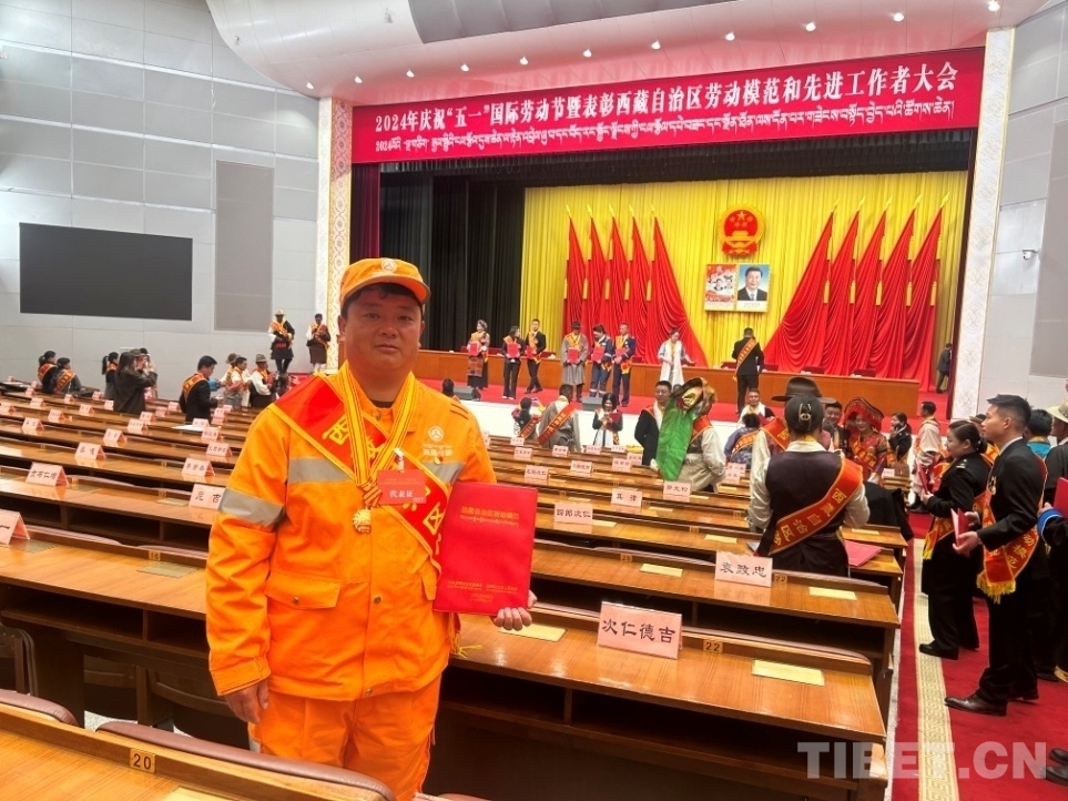 圖為覃春獲得西藏自治區(qū)勞動模范獎章