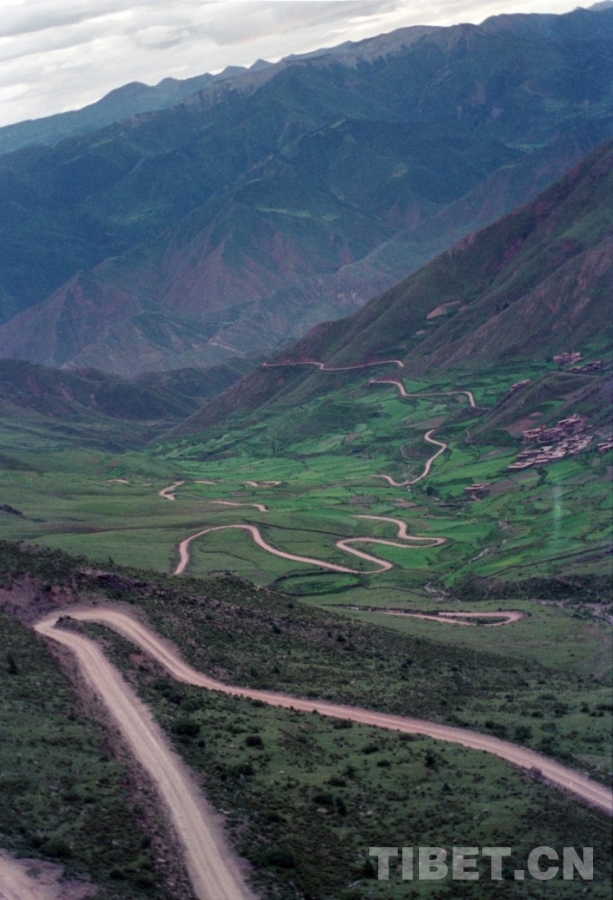 圖為蜿蜒曲折的川藏線昌都段公路(唐召明1988年攝)