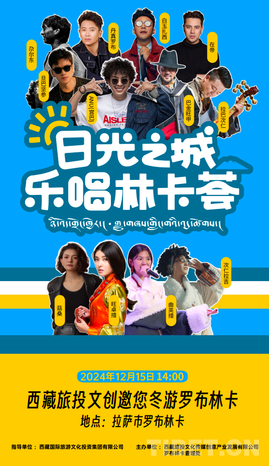 活動將于12月15日14:00正式開始,旺卓措、ANU(宮巴)、巴金旺甲、丹真羅布等知名藏族歌手將為觀眾帶來精彩絕倫的表演。觀眾在現(xiàn)場除了感受音樂魅力、領略西藏文化風情外,還有豐富的美食及文創(chuàng)集市。