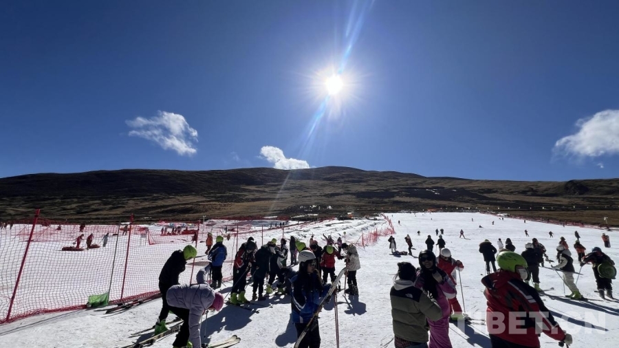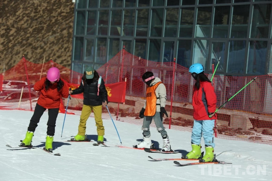 圖為活動(dòng)參與者在拉薩日多滑雪場體驗(yàn)冰雪運(yùn)動(dòng)。攝影:德吉卓瑪