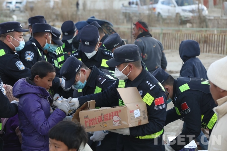 中國西藏網(wǎng)訊 1月7日9時(shí)5分,在西藏日喀則市定日縣措果鄉(xiāng)附近發(fā)生6.8級(jí)地震,震源深度10千米。西藏出入境邊防檢查總站移民管理警察在定日縣長所鄉(xiāng)雜村參與救援及安置工作。地震災(zāi)區(qū)第一夜,移民管理警察為當(dāng)?shù)厥転?zāi)群眾搭建防寒帳篷、發(fā)放各類物資,保證受災(zāi)群眾有屋住,有飯吃。(中國西藏網(wǎng) 通訊員/郭遠(yuǎn)敬)