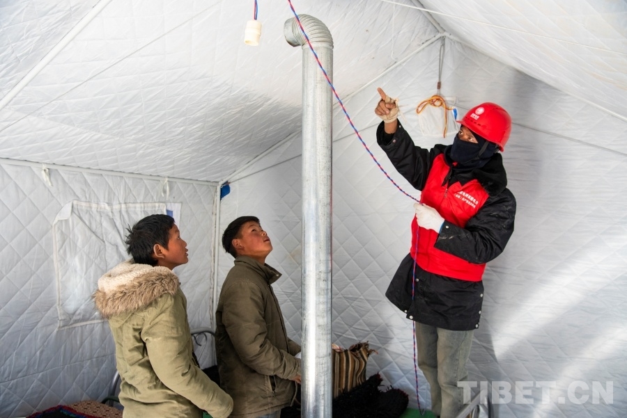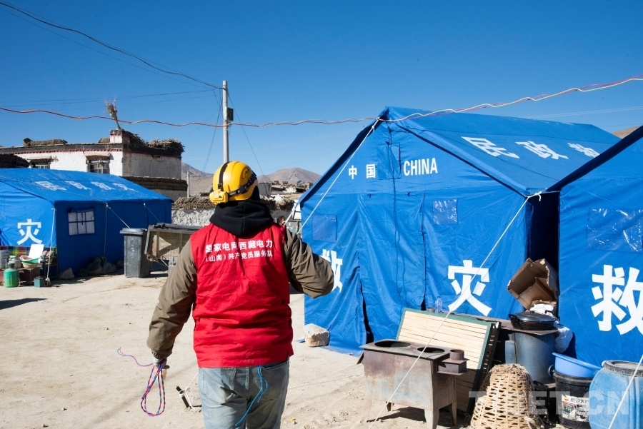 “我們是一支50人組成的支援隊(duì)伍,地震發(fā)生的第一天就已經(jīng)從山南趕到定日縣,分成10多個(gè)組幫助災(zāi)區(qū)排查電力問題,為受災(zāi)安置點(diǎn)架設(shè)線路,幫助災(zāi)區(qū)群眾恢復(fù)電力供應(yīng)。”服務(wù)隊(duì)成員次仁旦增說。