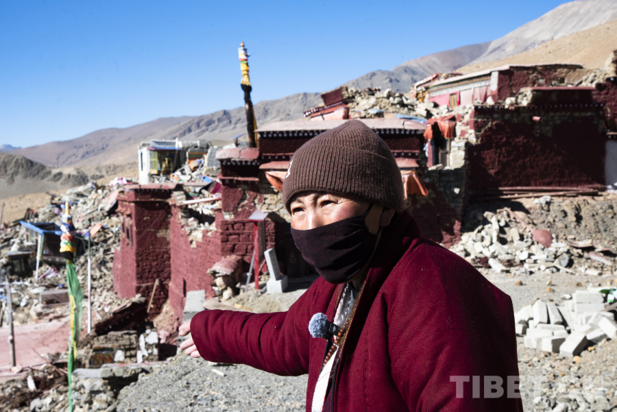 圖為宗布寺尼姑貢嘎拉吉回憶宗布寺地震情況 攝影:趙振宇