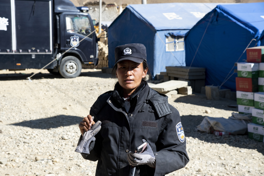 在嘎白村,有一位年齡最小的黨員名叫阿旺德金,去年剛剛大學(xué)畢業(yè)的她選擇到嘎白村成為一名科技振興專干。相較于塔杰書記、頓珠巴姆隊(duì)長以及次仁玉珍來說,她的工作經(jīng)驗(yàn)尚不豐富,在大災(zāi)大難面前雖還不能獨(dú)當(dāng)一面,但在自己的崗位上兢兢業(yè)業(yè)。13日,嘎白村的村民正在從安置帳篷搬往活動(dòng)板房居住,阿旺德金在一戶又一戶的帳篷內(nèi)幫助受災(zāi)群眾收拾個(gè)人物品。