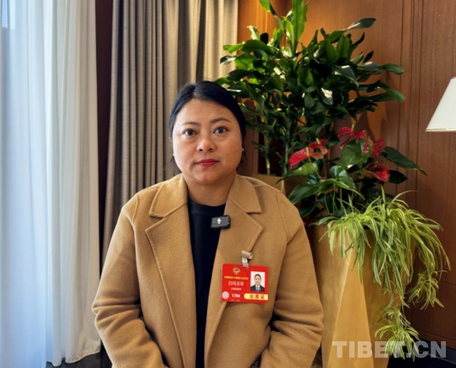 圖為兩會期間,白瑪玉珍接受中國西藏網(wǎng)記者采訪