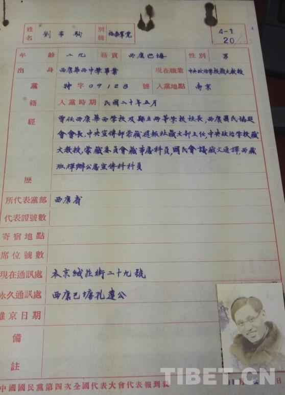 1931年,劉家駒加入中國(guó)國(guó)民黨,成為早期藏族黨員之一。他不僅出席了中國(guó)國(guó)民黨四中全會(huì),還參加了國(guó)民政府在洛陽(yáng)召開(kāi)的國(guó)難會(huì)議,并將自己的著作《康藏的過(guò)去和現(xiàn)在》分發(fā)給與會(huì)人士,大聲呼吁大家重視康藏工作。同年11月21日,“西康旅京同鄉(xiāng)國(guó)防救亡會(huì)”成立,劉家駒被選舉為會(huì)長(zhǎng),在9名執(zhí)行理事中,有6名是藏族,分別為劉家駒(格桑群覺(jué))、江安西(洛松鄧珠)、馬定西、佛平西、楊紹西、馮云仙(女)。《國(guó)聞周報(bào)?名人錄》第8卷20期專門對(duì)時(shí)年29歲的劉家駒進(jìn)行了介紹。此時(shí)的他,已經(jīng)是中央政治學(xué)校(蒙藏政治訓(xùn)練班)的藏文教授,在教育領(lǐng)域發(fā)揮著重要作用,為培養(yǎng)了解藏族文化和語(yǔ)言的人才貢獻(xiàn)力量,為邊疆治理提供智力支持。
