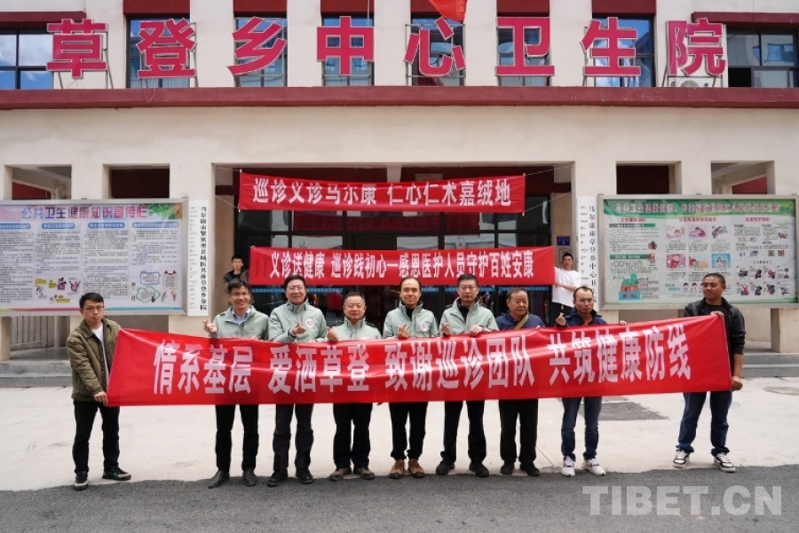 圖為草登鄉(xiāng)義診點的醫(yī)療專家們合影 攝影:喇應(yīng)強(qiáng)