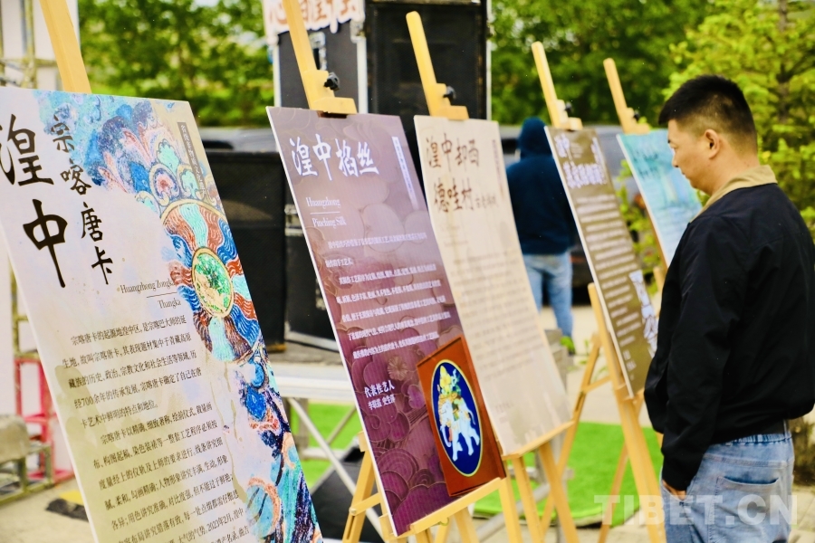 圖為觀眾觀看展板了解非遺 攝影:龍真多吉