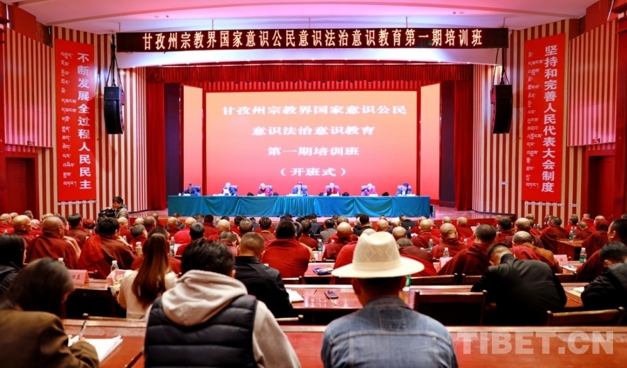 中國西藏網(wǎng)訊 6月24日,甘孜州宗教界國家意識公民意識法治意識教育第一期培訓班開班儀式在四川省甘孜藏族自治州甘孜縣會師劇場舉行,澤旺吉美、多吉扎西、圖布丹·確吉堅贊等140余名藏傳佛教界和天主教、基督教、伊斯蘭教等宗教代表人士參加開班儀式和培訓。